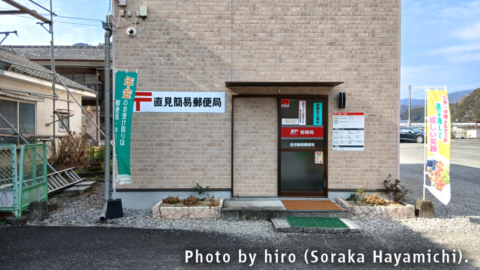 - 備考:合併前の旧・直川村中心部に設けられた郵便局で、同村内の集配業務を行っている。隣に佐伯市直川振興局(旧・直川村役場)。