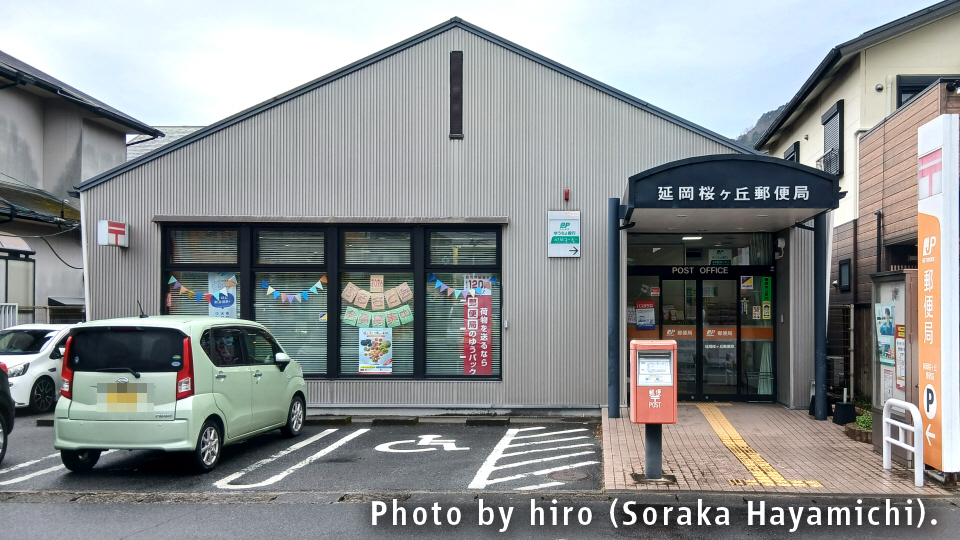 - 備考:旭化成延岡工場(旭化成発祥の地)のスグ近くにある郵便局。元々は旭化成に従事する社員相手に、1949年に延岡郵便局の分室扱いで開局したことがルーツになっている。1990年に分室を廃止し、特定郵便局→普通郵便局(直営)に変更され、現在に至る。