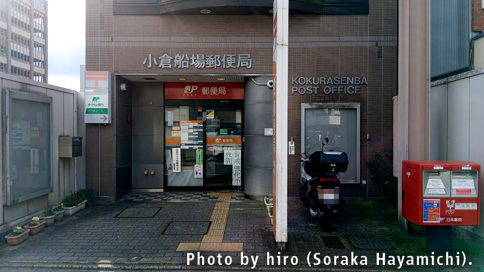 - 備考:小倉(福岡県)にいるのに「熊本」(県)。ここで言う熊本は、郵便局がある小倉北区の地名を指す。