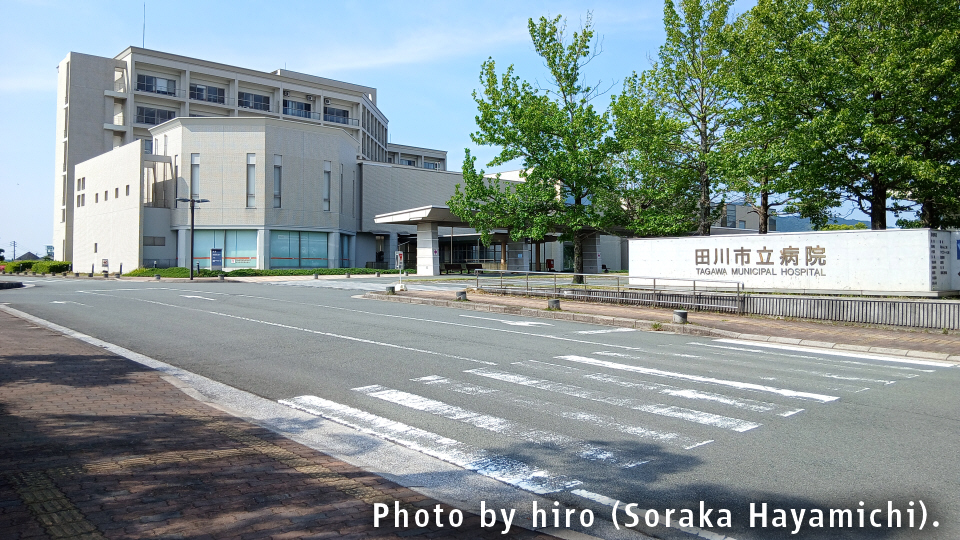 駅の近隣にある田川市立病院。県の災害拠点病院に指定されている。