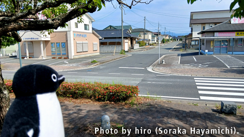 鉄道沿いは田園地帯と彦山川が流れる一方、高台はご覧の通りに住宅街が形成され、どう考えても自動車交通に依存している。