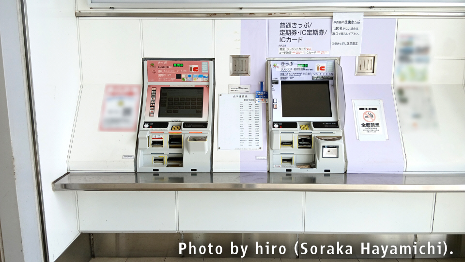 自動券売機は近距離型が2基。うち1基は定期券購入が可能。