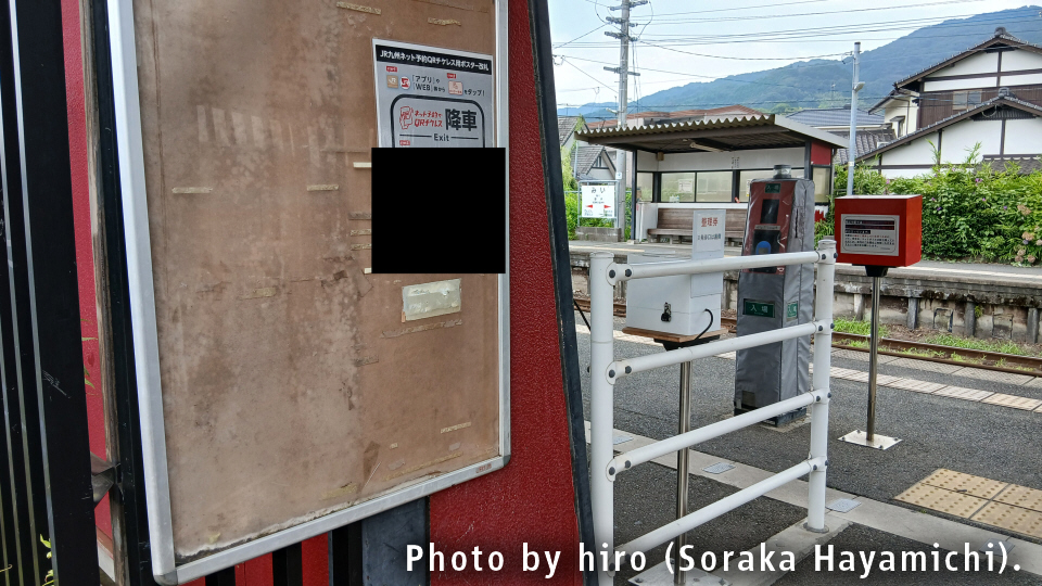 当駅はQRチケレス対象線区内であるため、出入口にQR改札ポスターが貼られている。