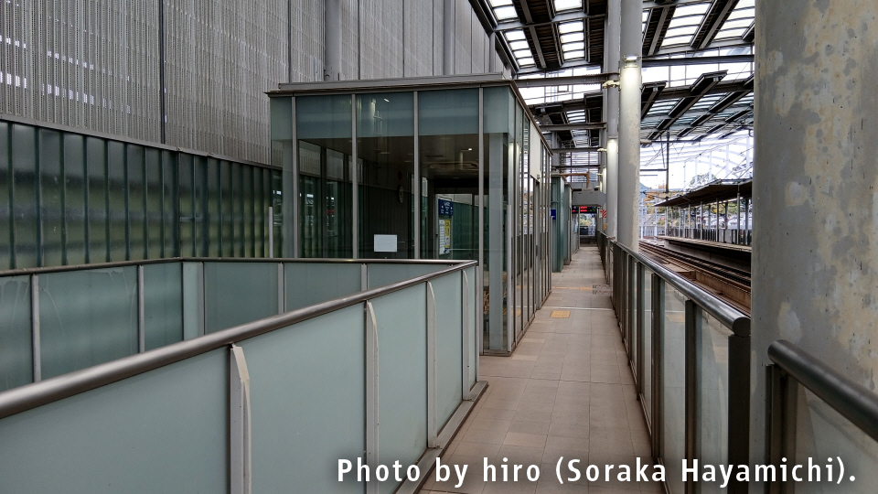 改札内コンコースを眺める。ガラス張りで覆われた壁面が印象的。