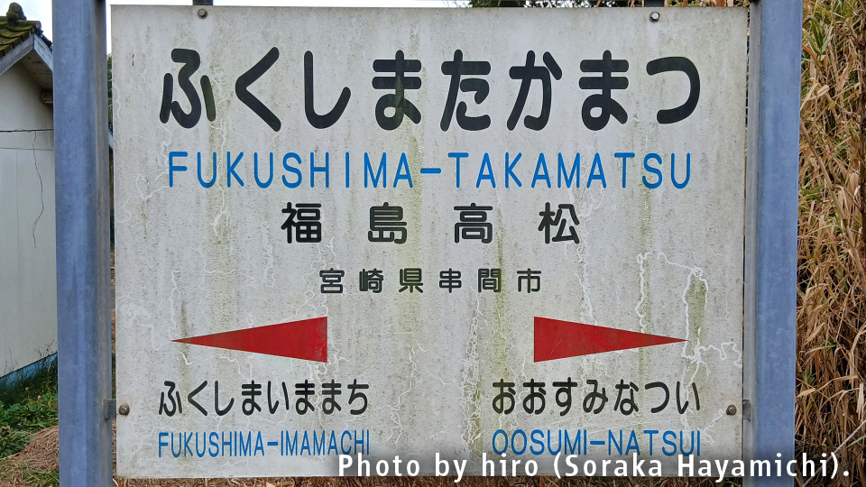 「福島」と「高松」という駅名から、新幹線が止まる県庁所在地最寄りの巨大ターミナル駅を連想するかもしれないが、「福島」は串間市発足前までの旧・福島町、「高松」は駅周辺の地名のことを指している。