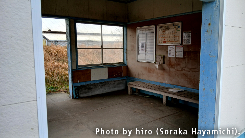 駅舎からホームを眺めた様子。線路の向こうは畜産業で、牛糞の匂いが強烈だった。