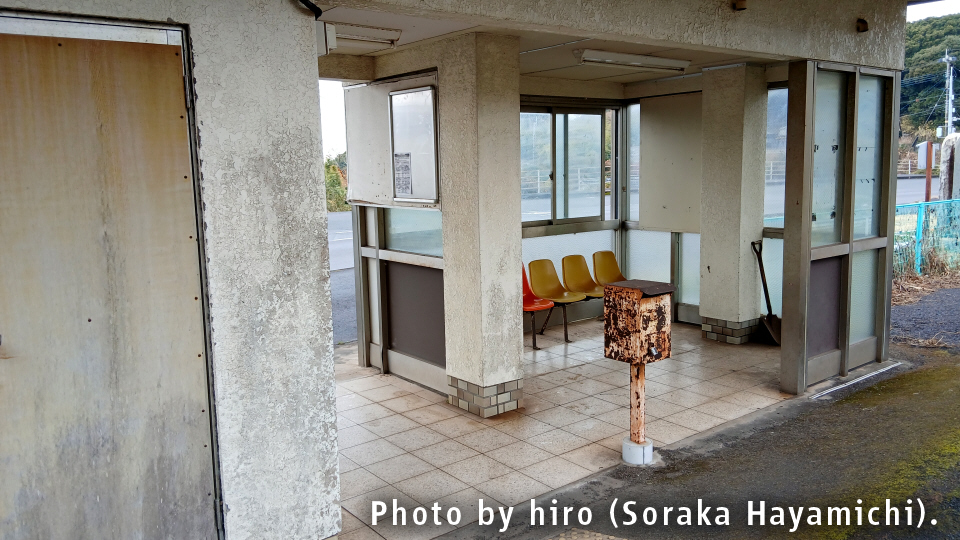 駅舎内を眺める。古ぼけた鉄筋コンクリート製の小さな建物。