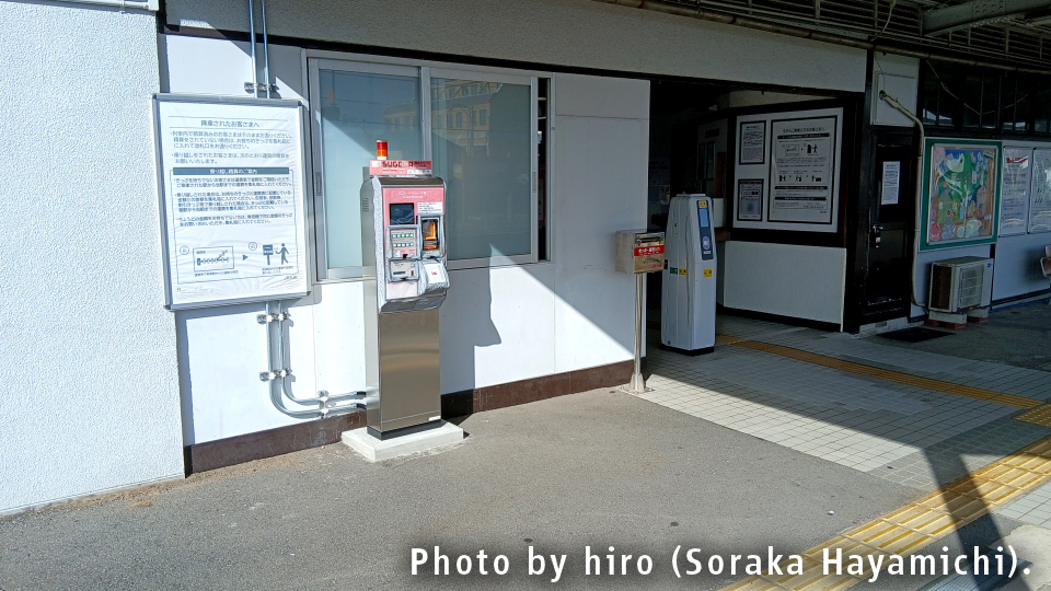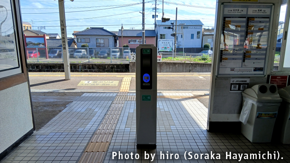 川棚町中心部最寄り駅ではあるが、利用者数に配慮して簡易式カードリーダーを改札口に設けるのみで対処。