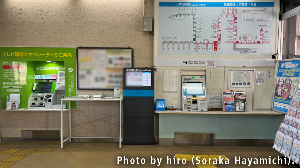 窓口があるように見えるが、駅員による乗車券の手配は行っておらず、隣のみどりの券売機プラスでのみの対処となる。