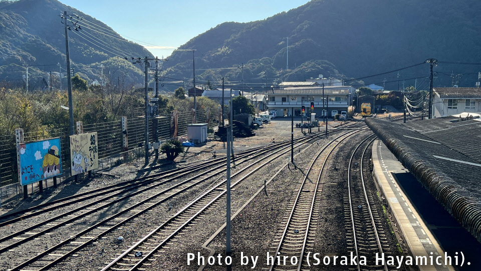 当駅までは概ね1時間に1本だが、それより先は1日5往復まで激減するため、実質、行き止まりに近い。