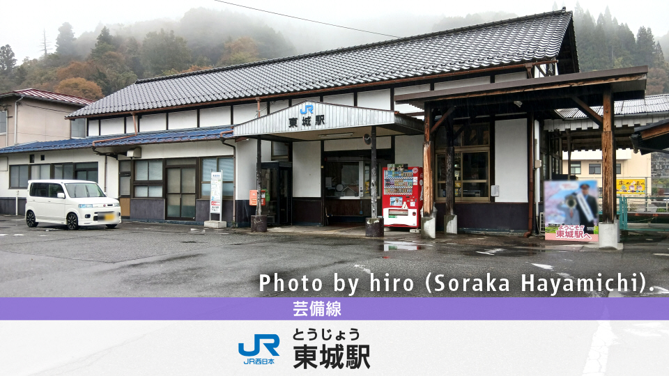 旧・東城町と言えば帝釈峡があることで知られるが、肝心の路線バスが運行されておらず、その地へは自動車・タクシーで移動するしか手立てがない(一応、平日限定予約バスがあるとのこと)。当駅から備後庄原駅までのJR線はほぼ役立たずの状態で、並行する高速バスも1日5往復程度と窮地に立たされていることから、庄原市中心部までの移動はかなりリスキーと言える。