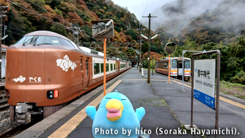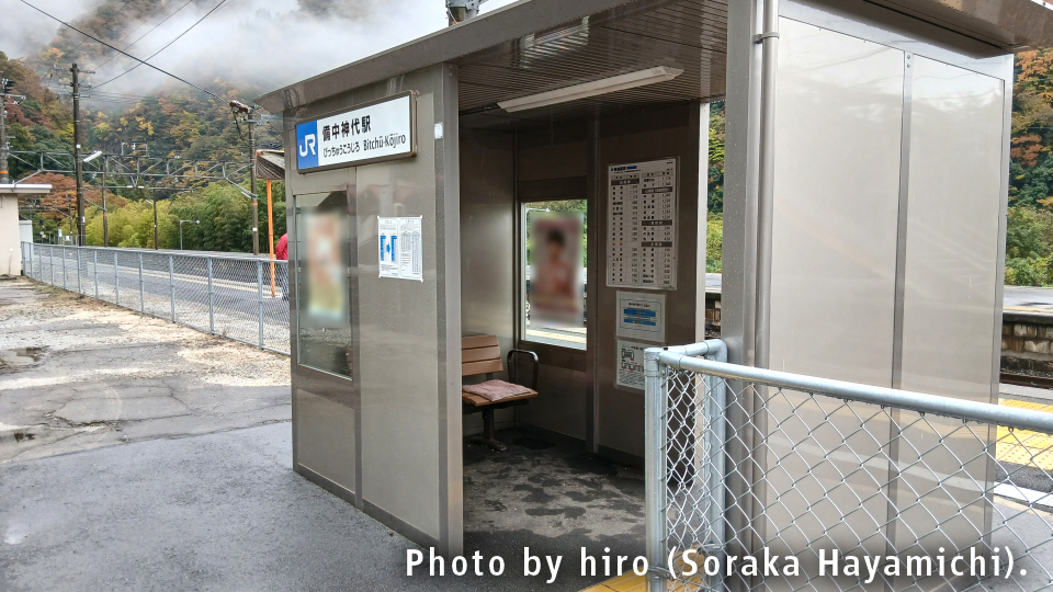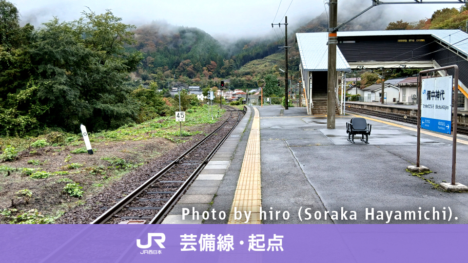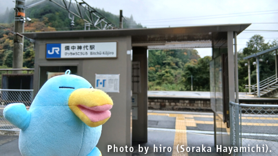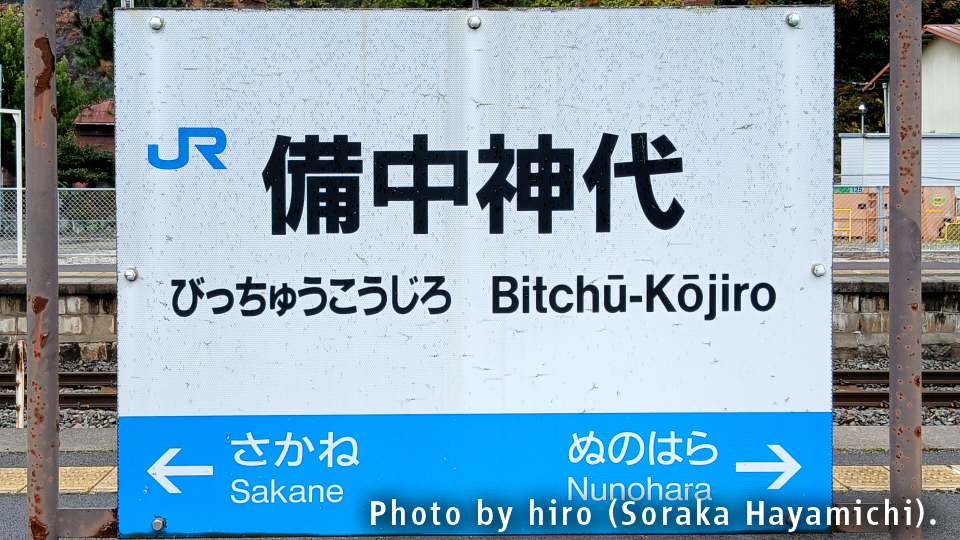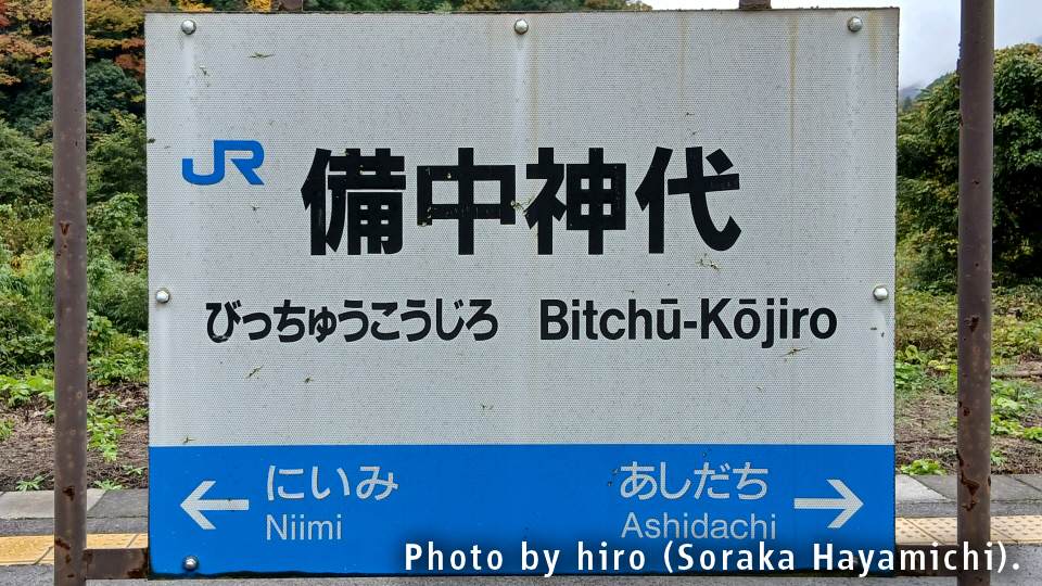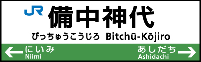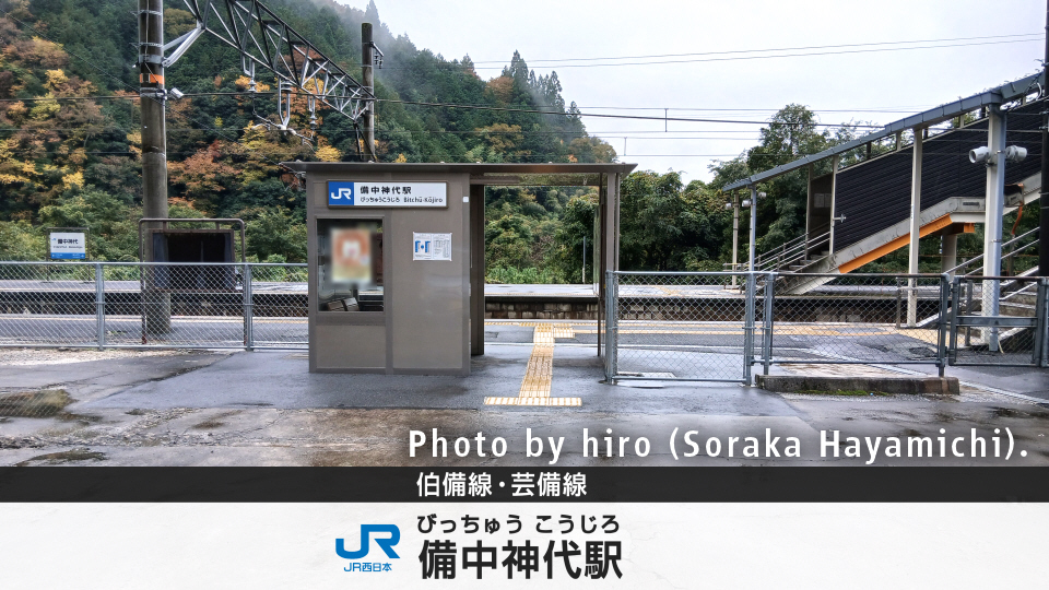備中神代(びっちゅう-こうじろ)駅は、岡山県新見市西方字庄兵衛に設置されている、伯備線・芸備線の駅。山陰・山陽の中間を縦断する芸備線の起点駅だが、運行上は伯備線経由で新見駅まで続いている。