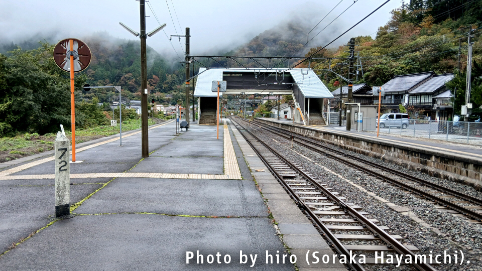 駅舎を眺める。現在のプレハブ駅舎は2022年に建て替えられた。
