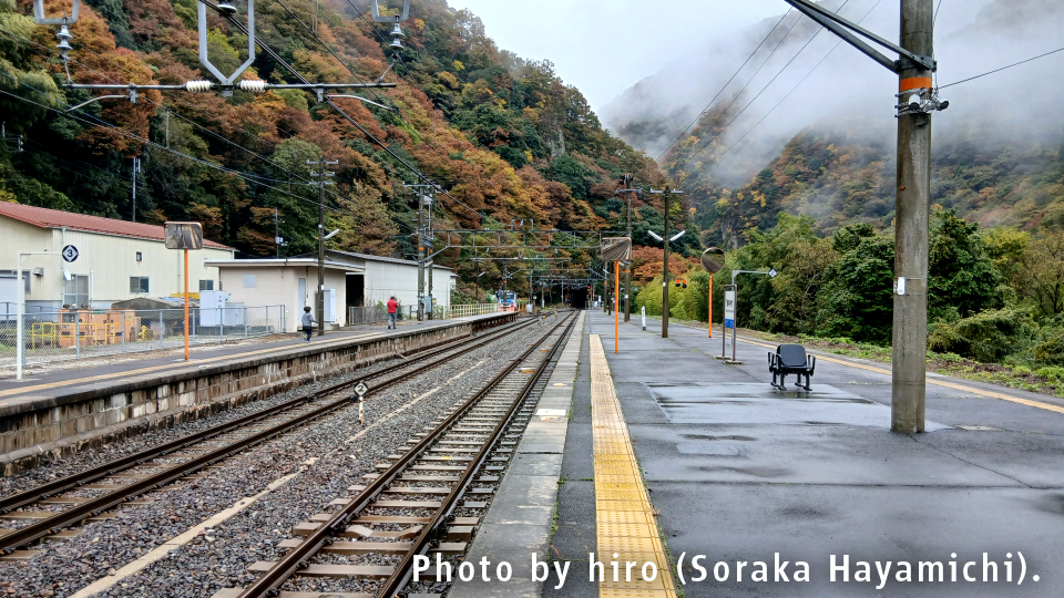 当駅と新見駅の間は、急峻な山間部の谷間を経由する(並行路線の国道182号はショートカット)。