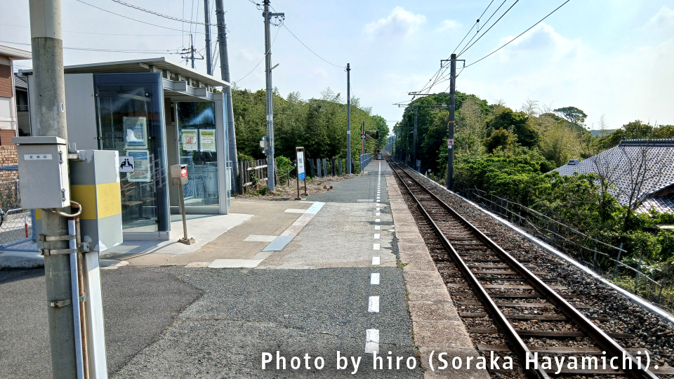駅構内を眺める。プレハブ式の簡易的な待合室があるのみ。