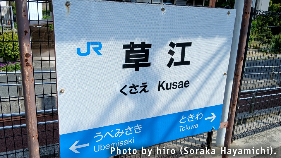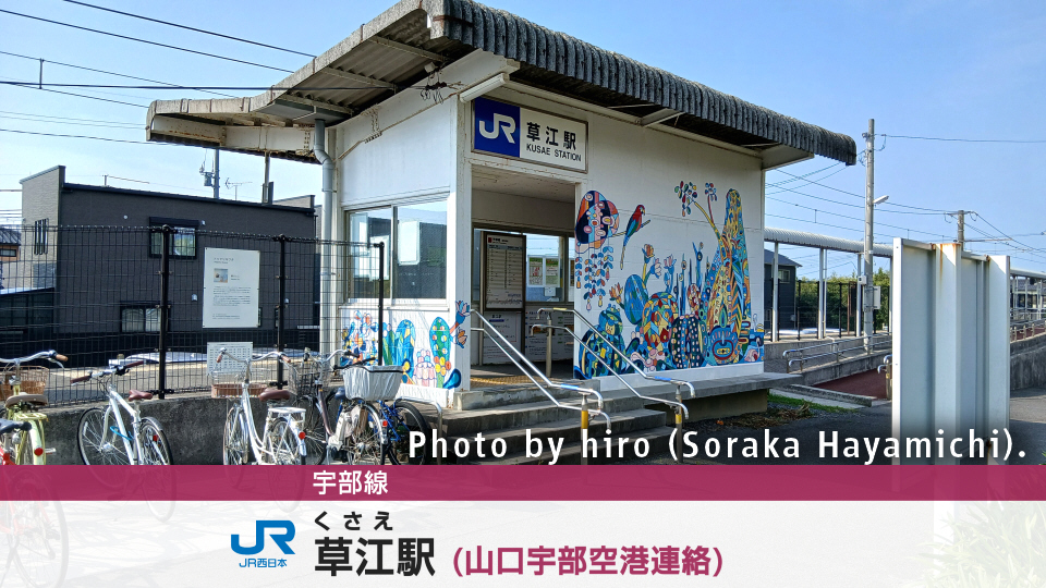 草江(くさえ)駅は、山口県宇部市草江4丁目に設置されている、宇部線の駅。山口宇部空港に近接しているが、空港とJR線とではダイヤが全く連動しておらず、空港連絡鉄道という印象は皆無に近い。