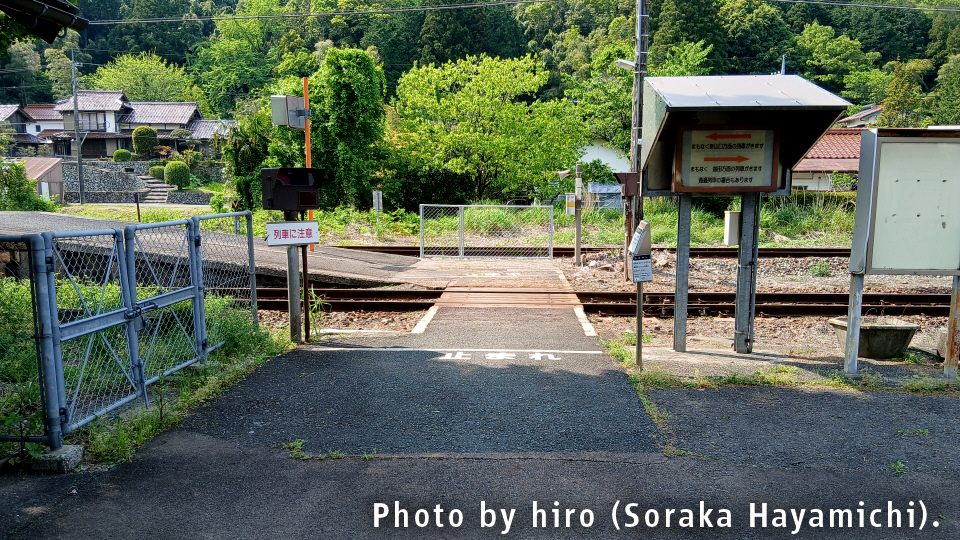 駅舎がなく、構内踏切を経て直接ホームへ乗り込む。