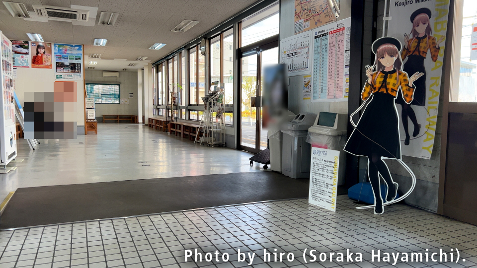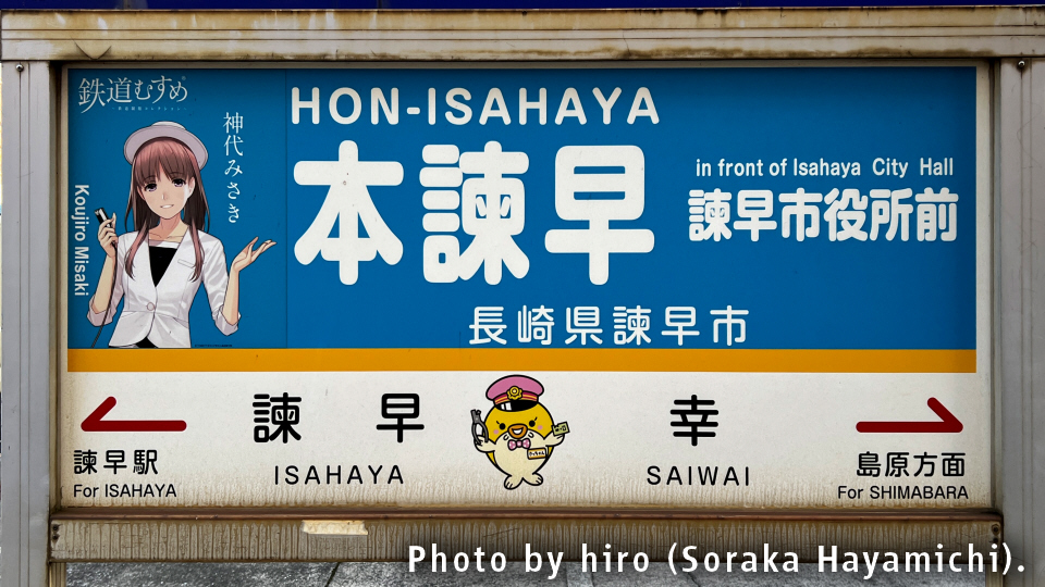 一部の島鉄駅では、駅名標に「鉄道むすめ」の神代みさきが描かれている。