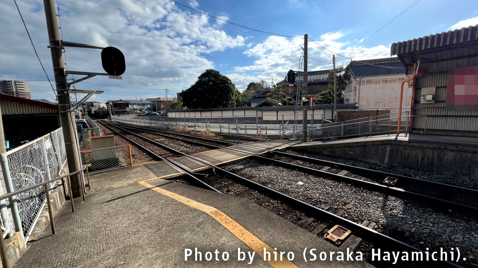 改札口の東側に構内踏切があり、上下線の行き来はそこで行う。
