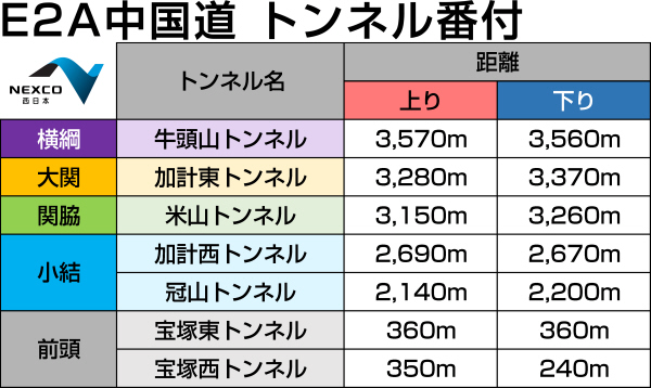 - E2A中国道全体で見ても、トンネルの割合は僅か2割程度しかない。