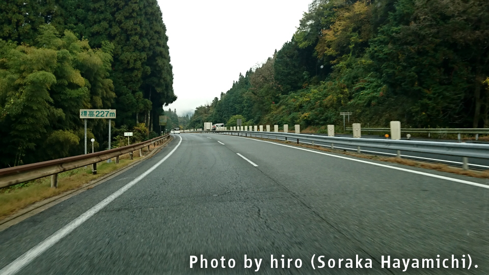 楢原PAを境にE2A中国道の雰囲気が大きく代わり、一転して山あいに沿って急カーブ・アップダウンを繰り返すようになる。