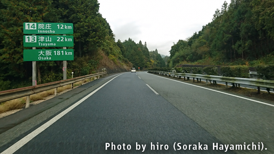 津山IC 9km 勝央JCT 18km 大阪 167km