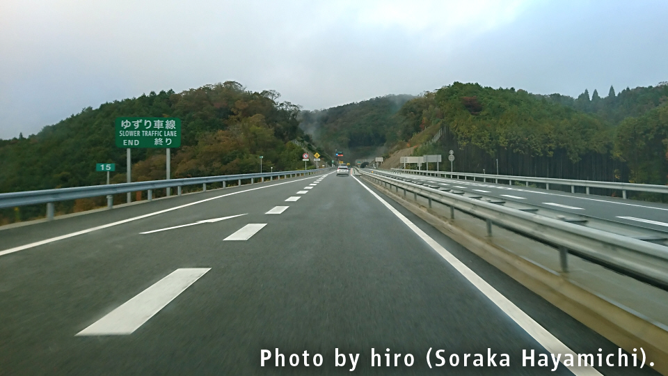 前述の通り、E29鳥取道・広島方面は右車線に寄る必要がある。