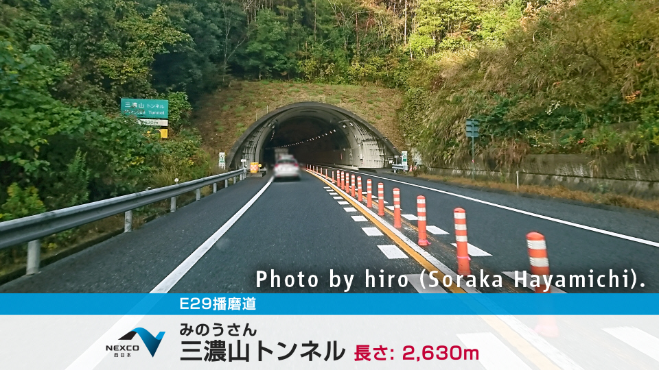E29播磨道全体で見れば2番目の長さを誇る大関級のトンネル。