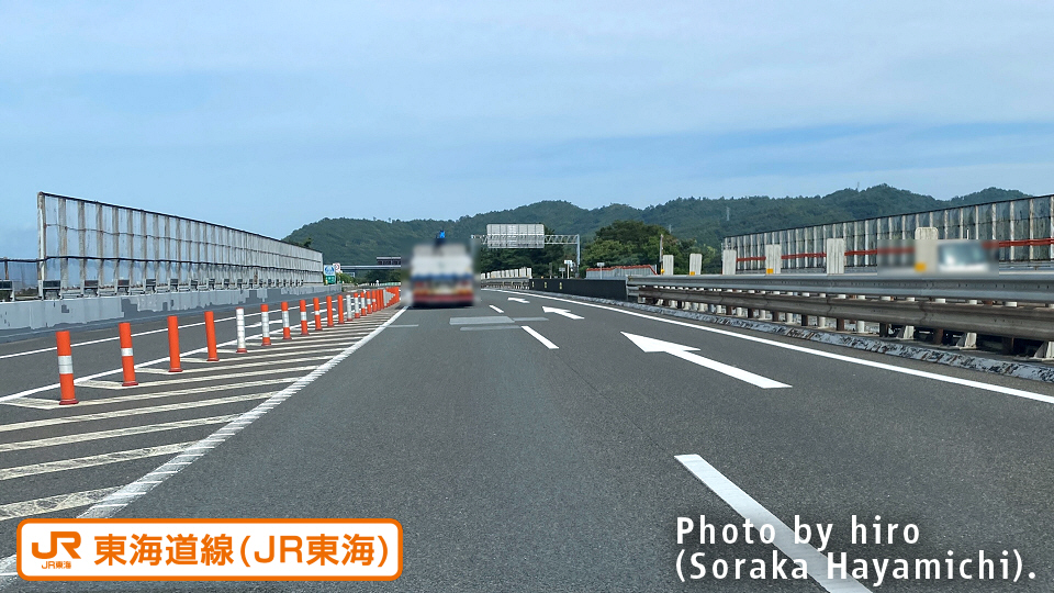 真下で東海道新幹線と立体交差。JR線と異なり、新幹線はやや北側に旋回している。