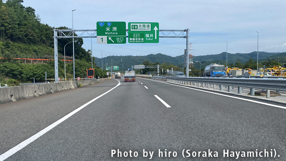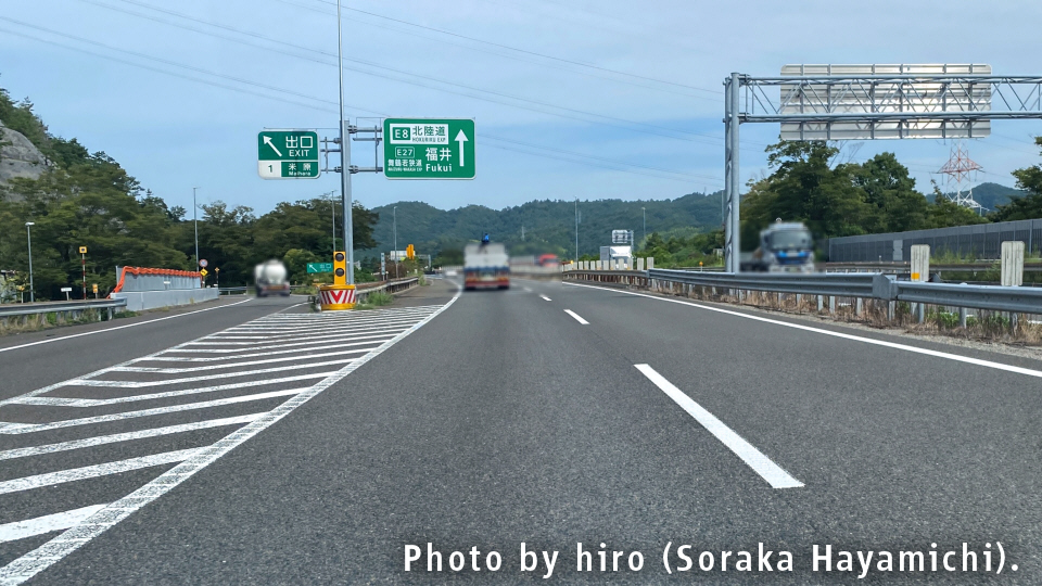 京都・大阪方面からのE1名神から分岐し、E8北陸道へ。長き北陸路の旅が始まる。