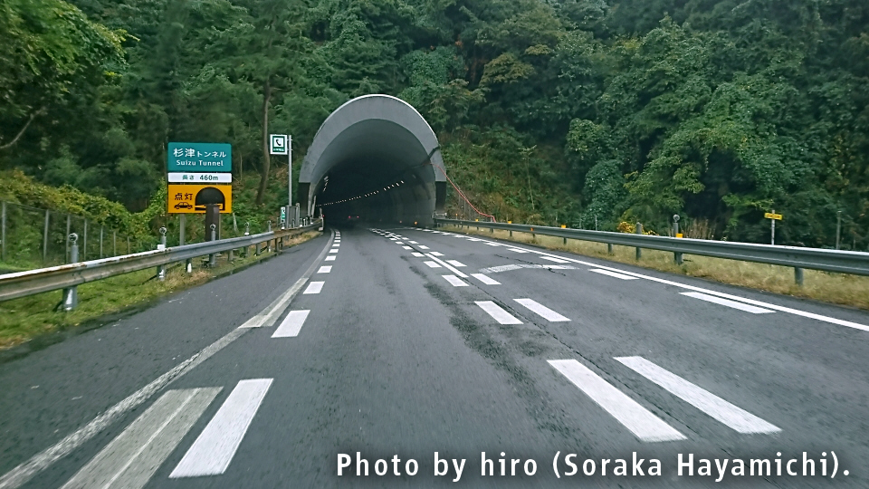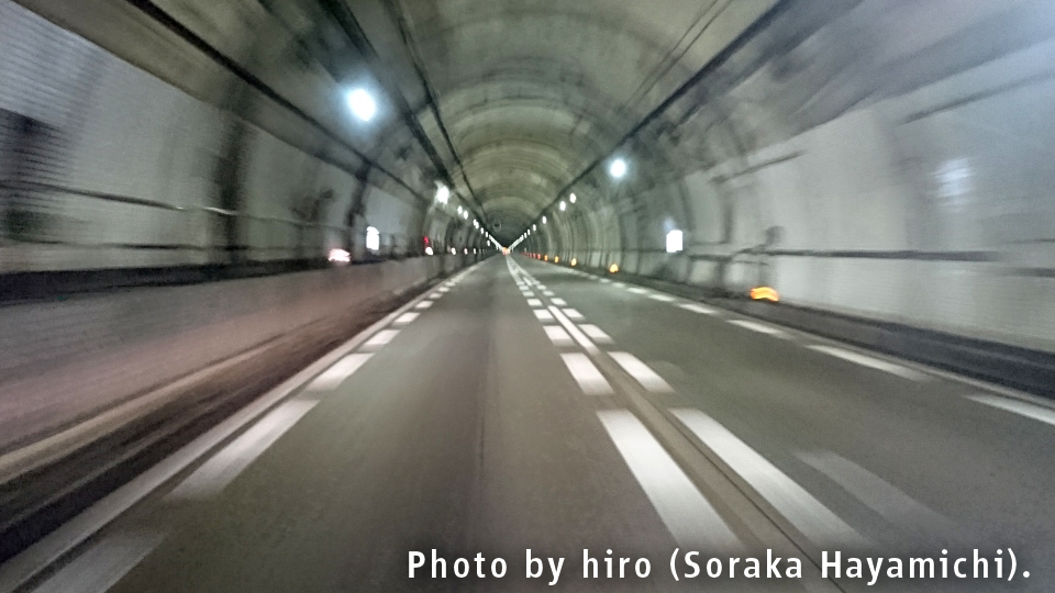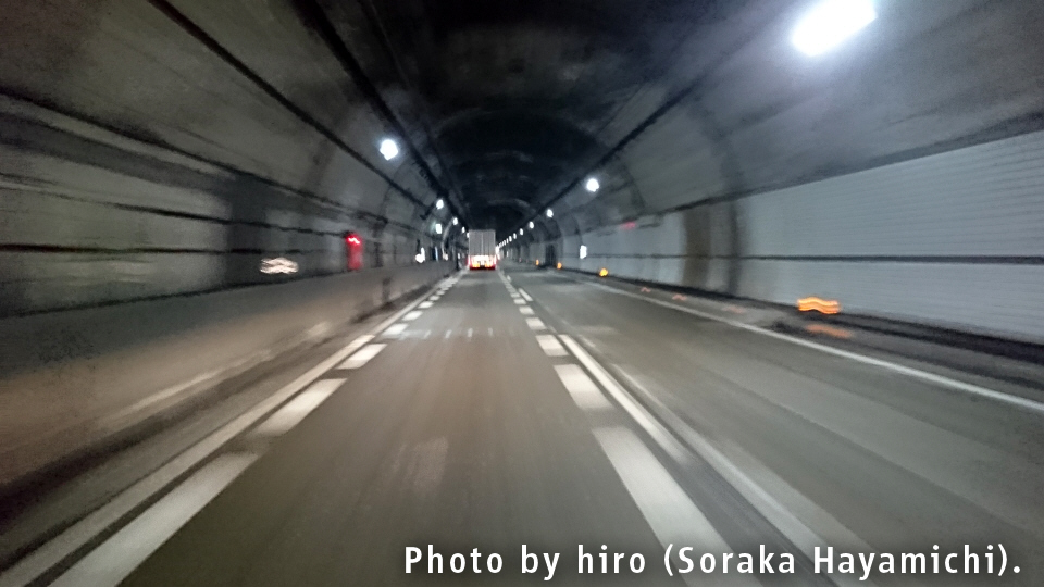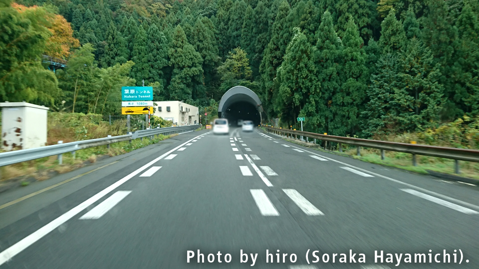 1km先トンネル 速度注意