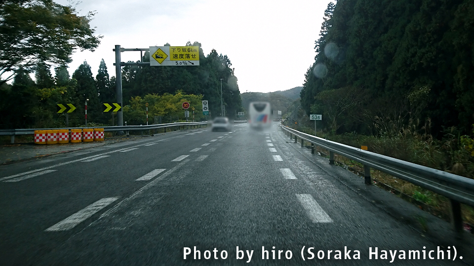 下り坂6km 速度落せ(最大傾斜5.0%)