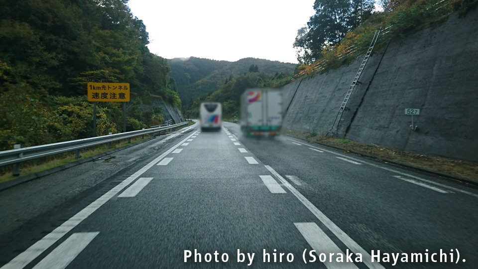 敦賀トンネルまではS字カーブが大変多く、山岳地帯なのも相まって、移動に支障を来すことが多い。