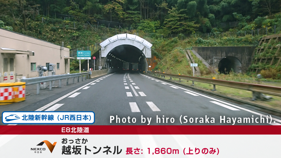 途中までは初代・北陸本線の跡地をなぞるようにE8北陸道が作られている。