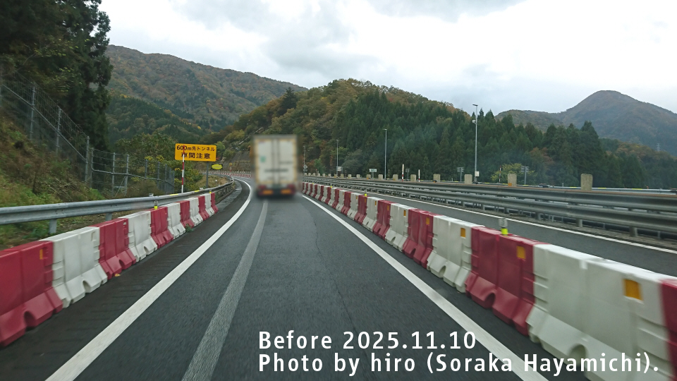 600m先トンネル 車間注意