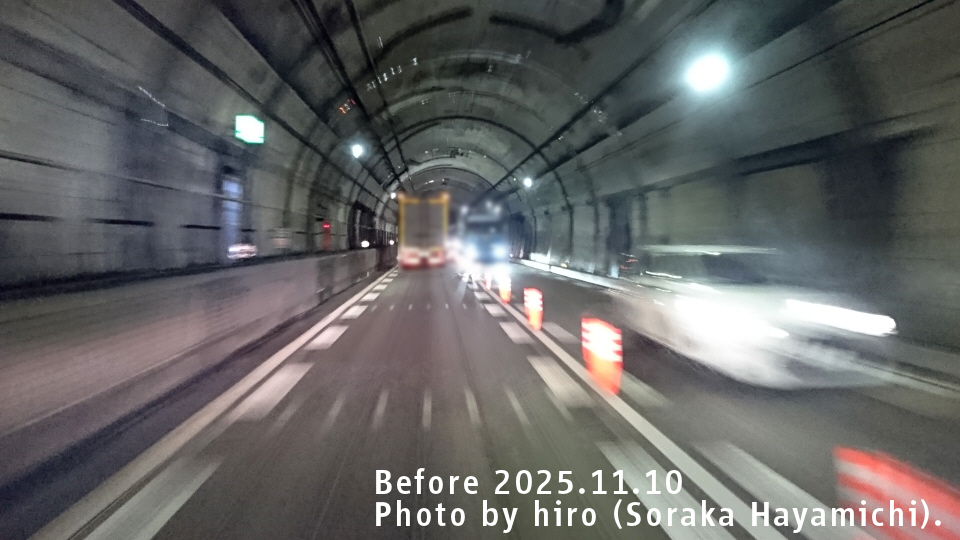上り方向限定のトンネル。右手に見えるのは緊急通路(避難坑)。