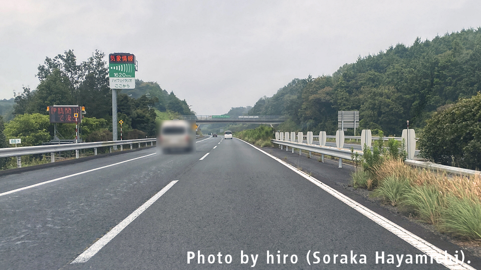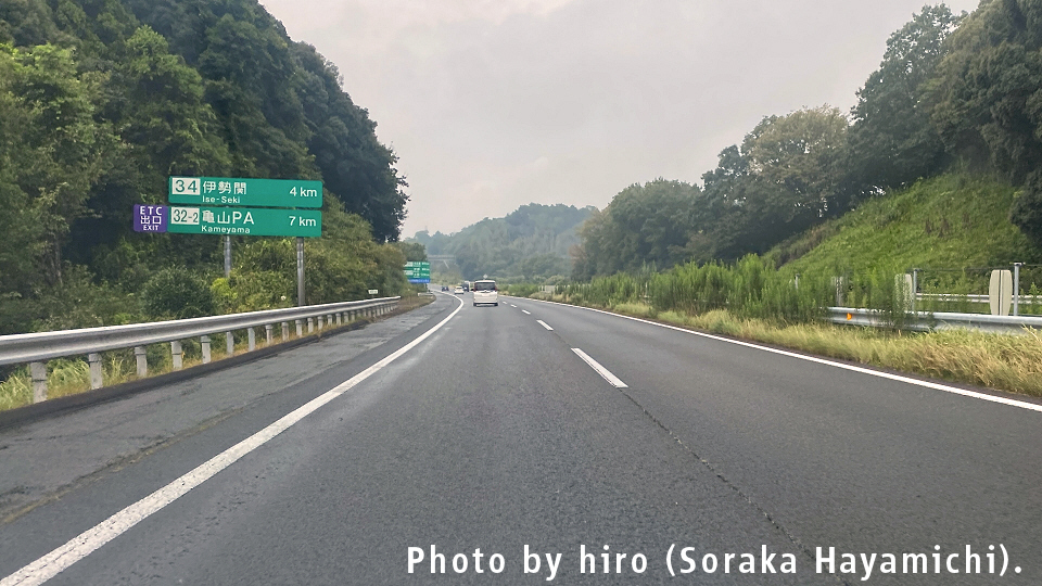 伊勢関インターから先は急カーブが多いため、早い段階で速度規制を掛けている。