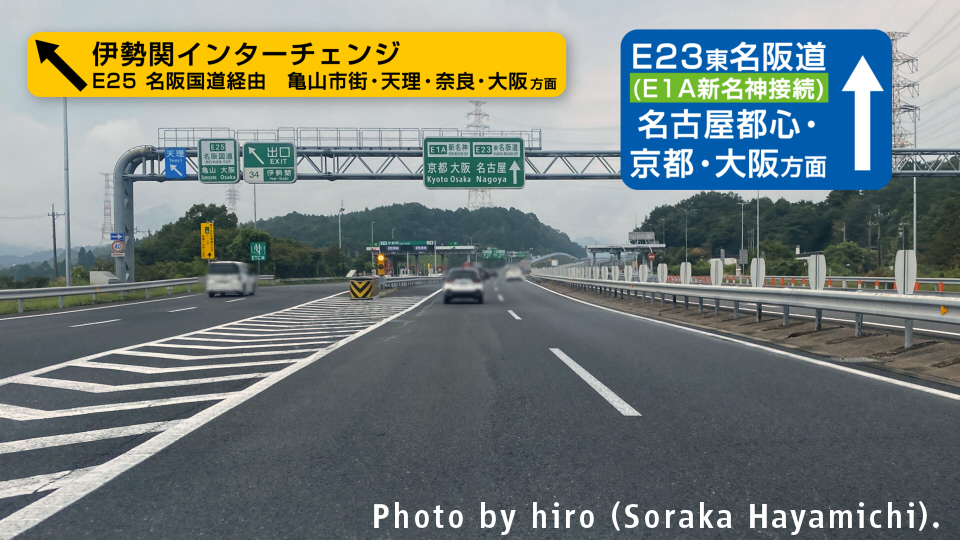 2つある出入口料金所の中間点付近で、伊勢道は終了。そのまま東名阪道にバトンを繋ぐ。
