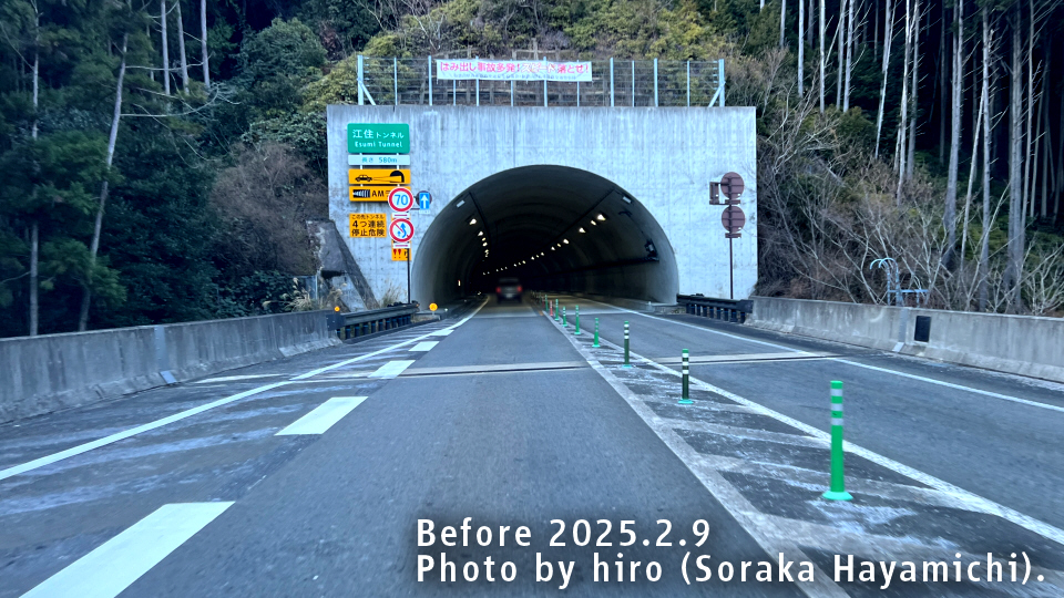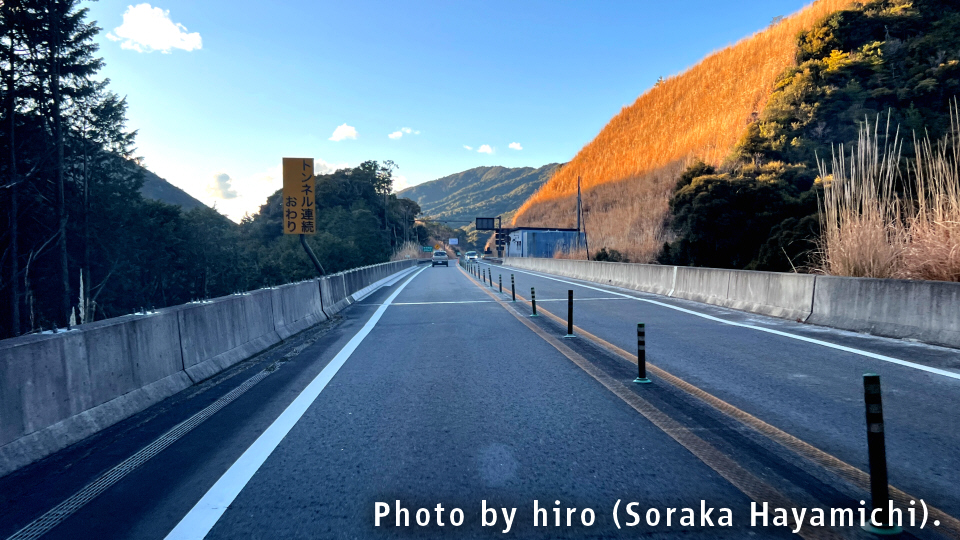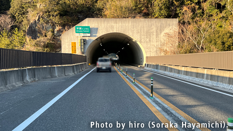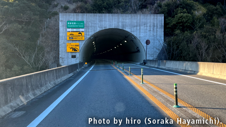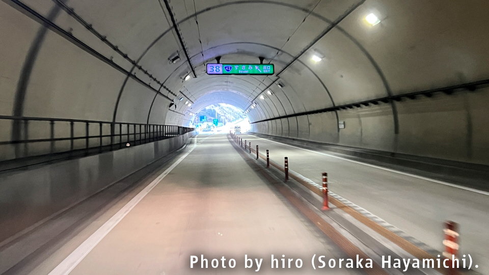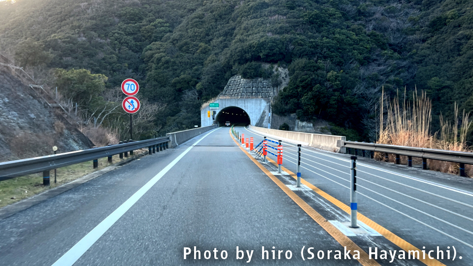 すさみインターからの流れで、周参見第1トンネル内は緩やかな上り坂が断続する。