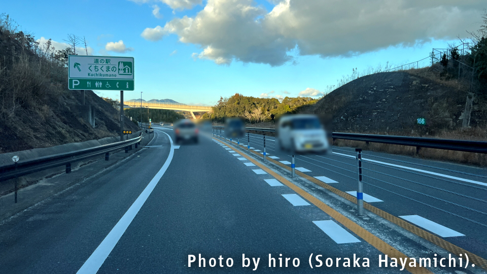 日置川インター以降、再び上り坂へ。速度低下にご注意を。