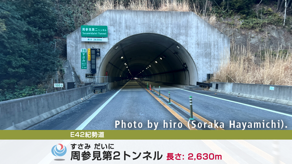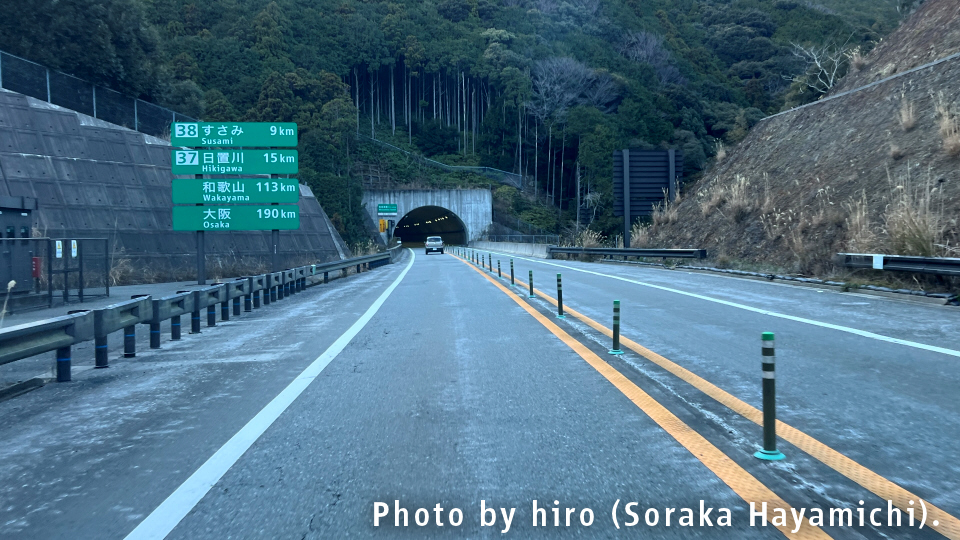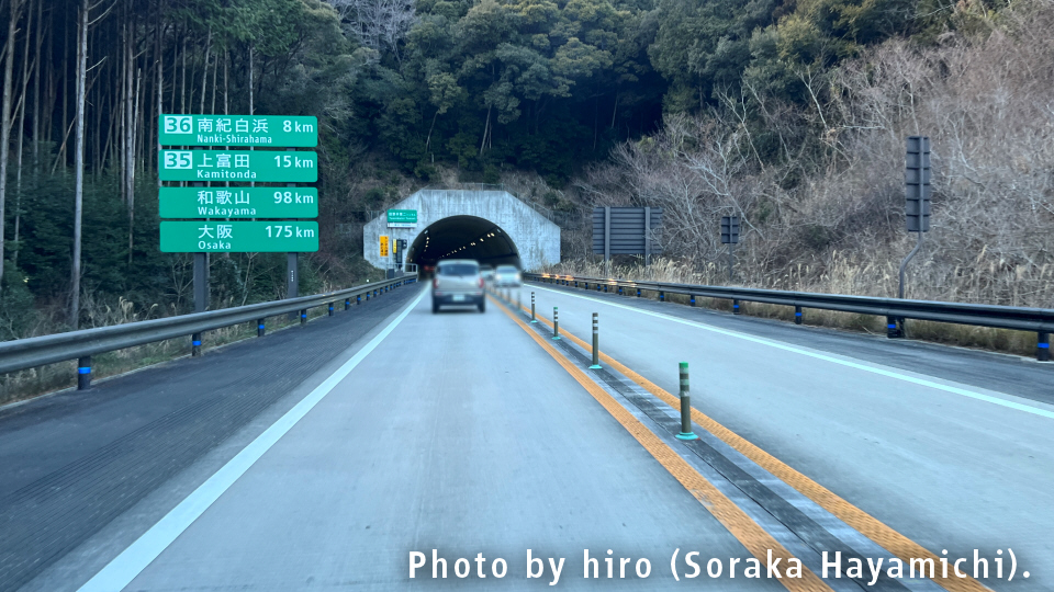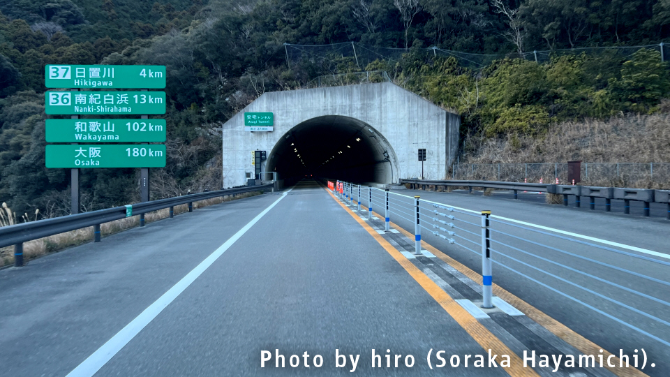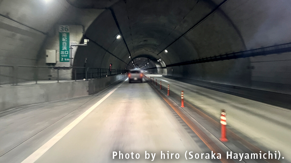 次の南紀白浜インターまでの道中でもまた、1~2kmを超える大物トンネルが軒を連ねる。