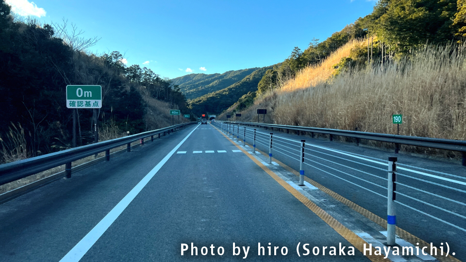 安宅トンネル内では「残り1キロ」だったが、ココでは「500m」。明らかに距離案内が異なる。