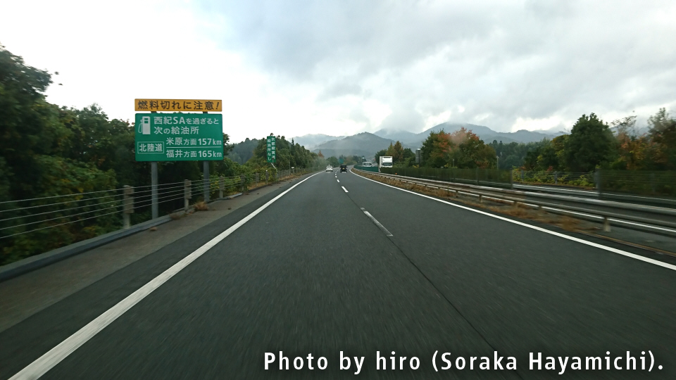 [E8北陸道] 米原方面 157km / 福井方面 165km