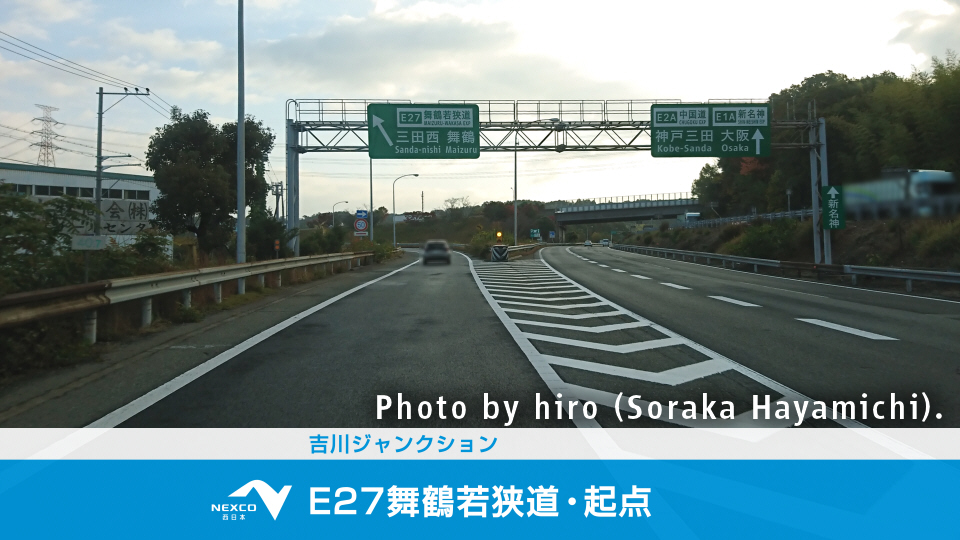 三木市吉川町にある吉川JCTより、E27舞鶴若狭道がスタート。