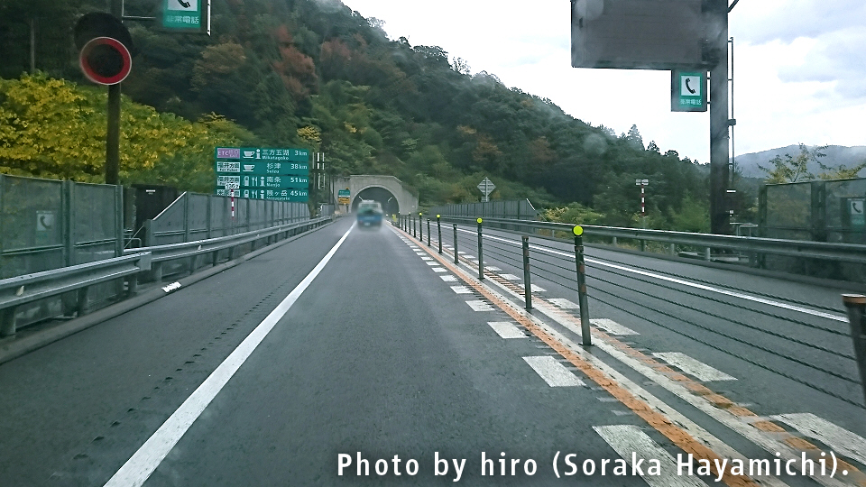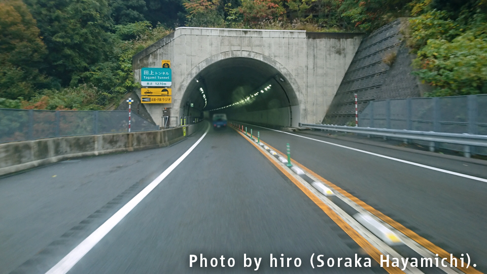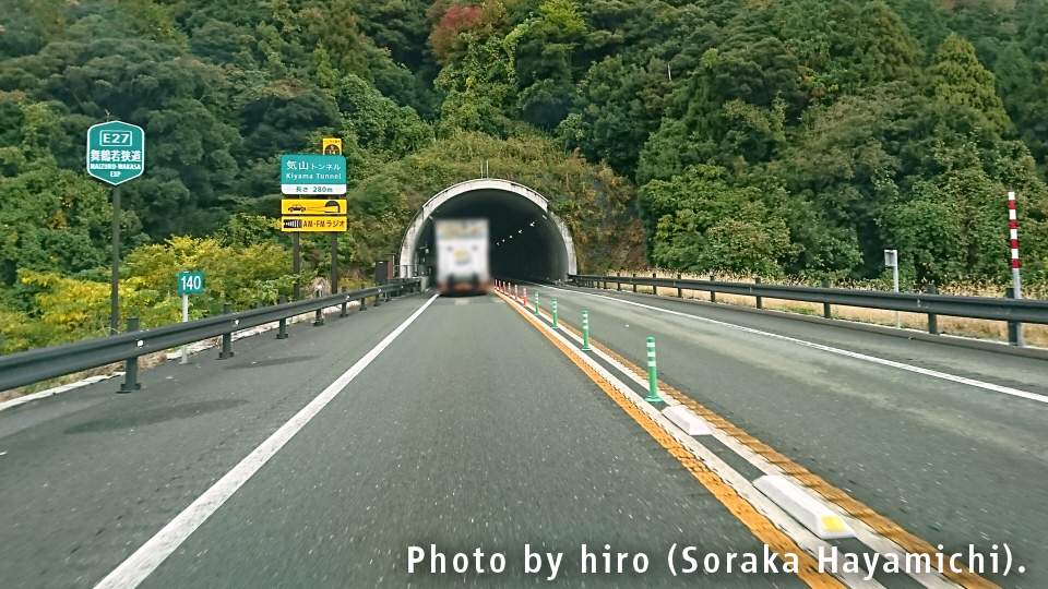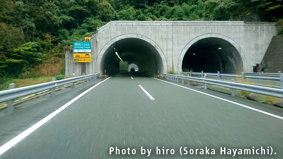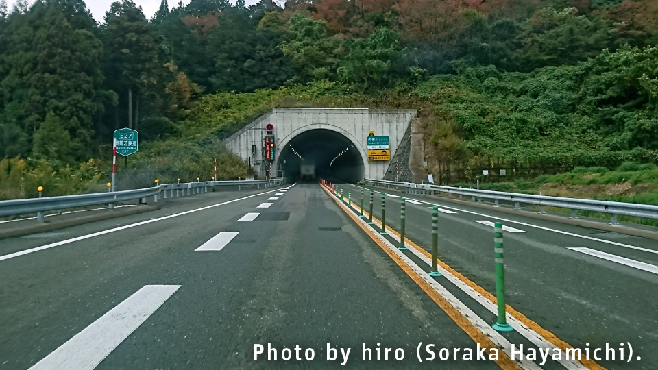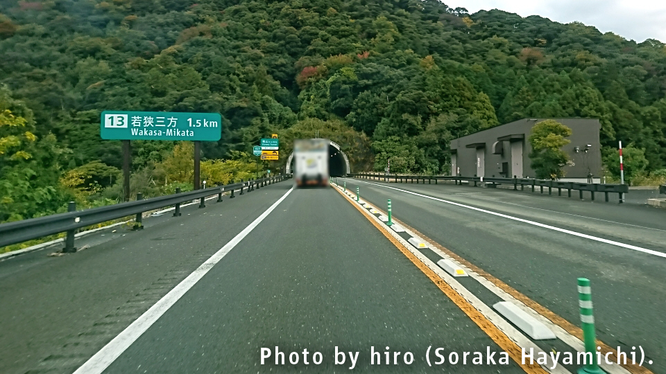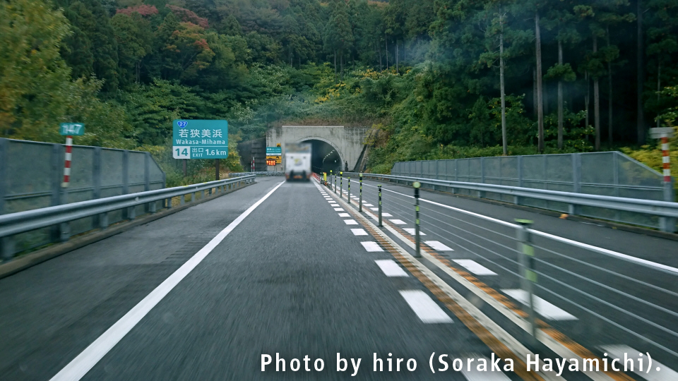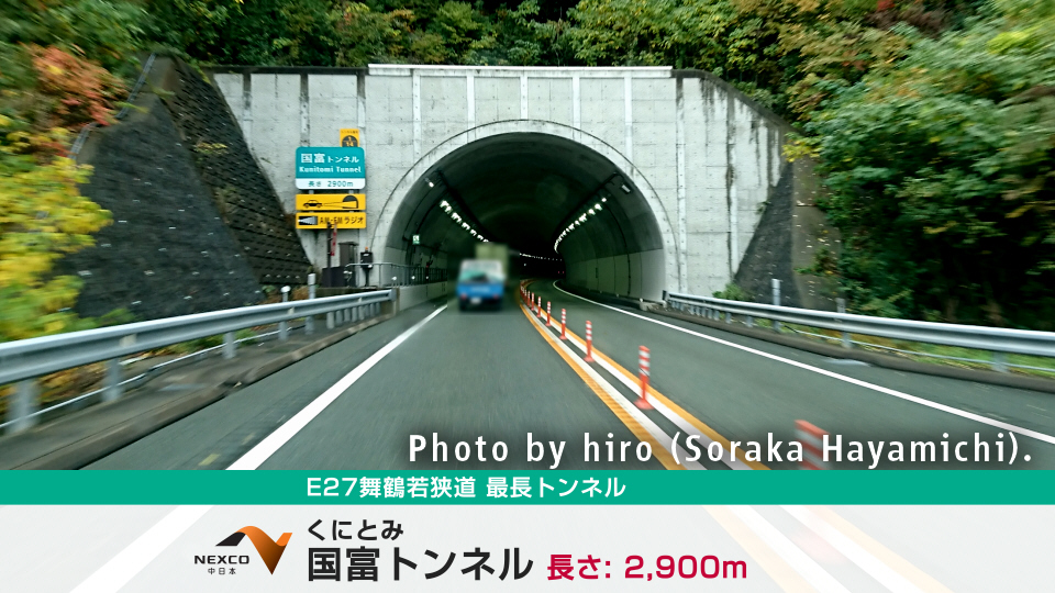 小浜インターを過ぎて早々、3kmにも達する国富トンネルへ。E27舞鶴若狭道で最も長い。