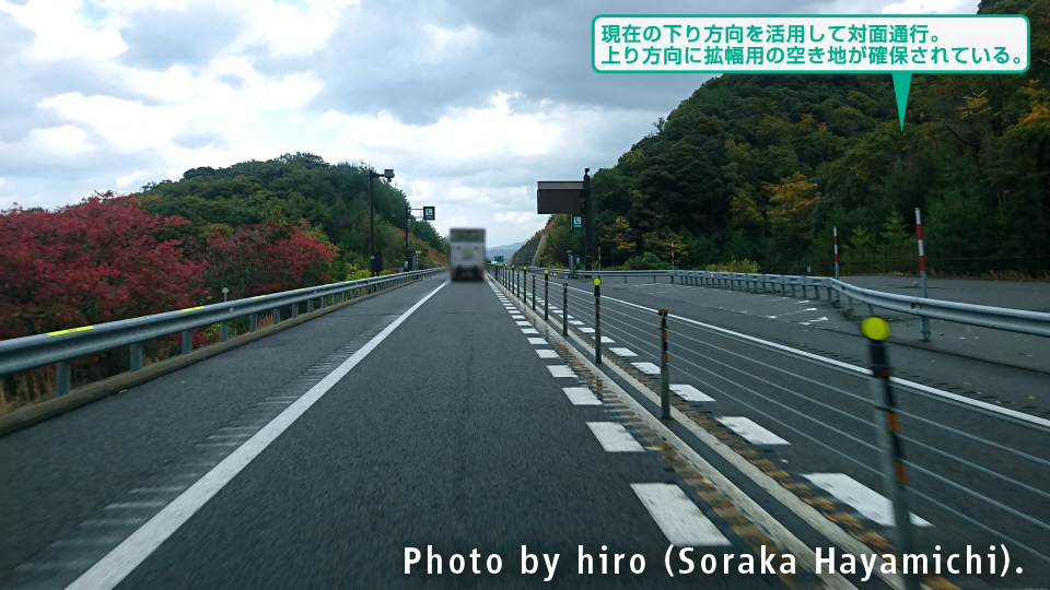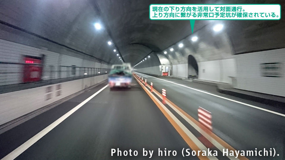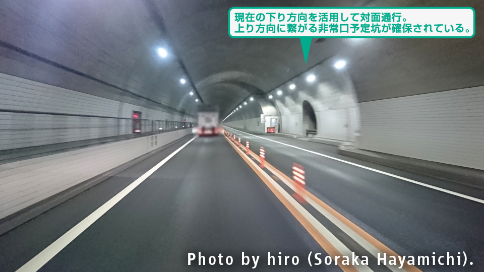 上り方向に通じる非常口予定坑が一定間隔で設けられている。4車線化して欲しい。