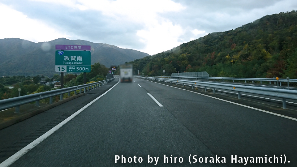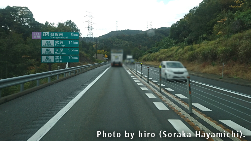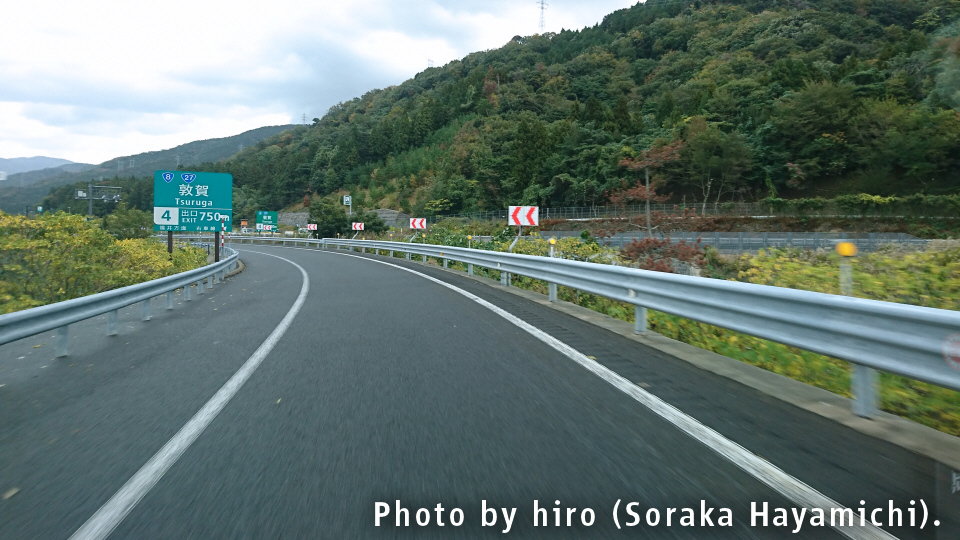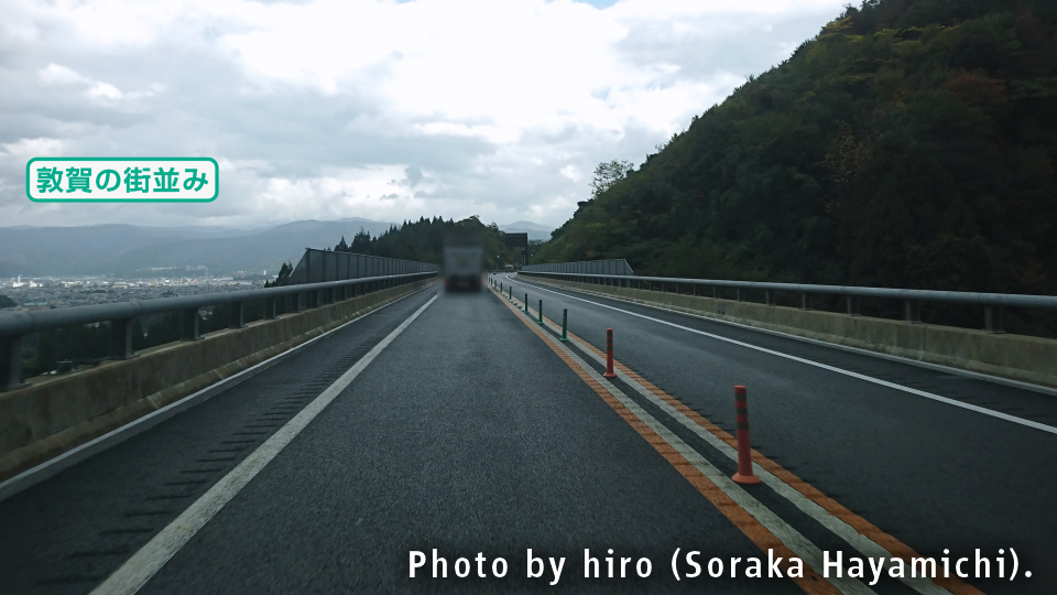 ある程度進むと、山の上を目がけて上り坂となり、グッと高度を上げながら敦賀市内へと突き進む。