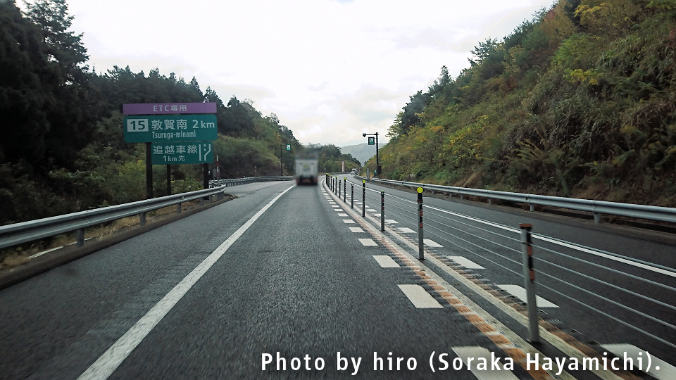 敦賀南インターの手前まで追越車線が復活するが、僅か1km程度と非常に短い。