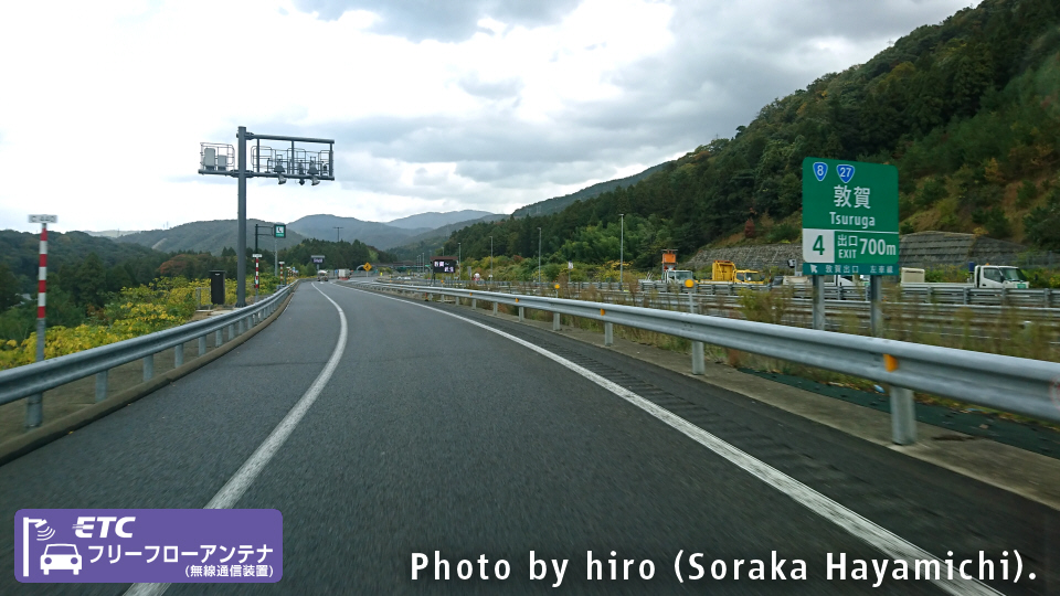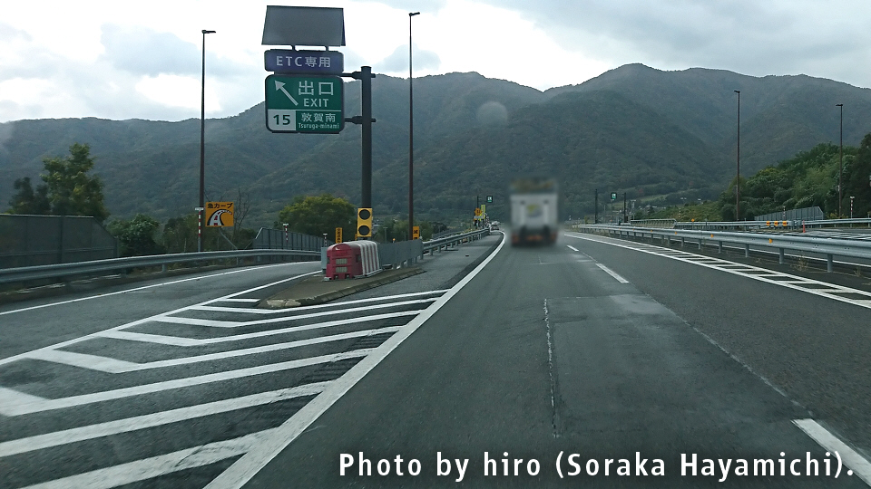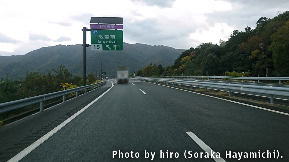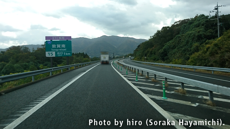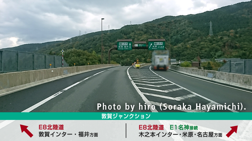 中郷トンネルを抜けた後、スグに敦賀JCTと合流する。進路変更に注意。