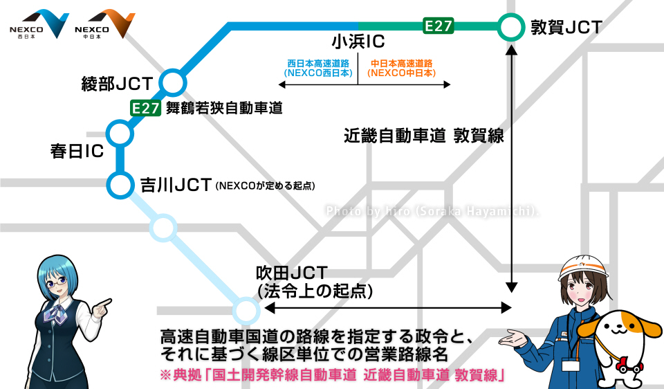 近畿自動車道敦賀線には、E2A中国道(吹田~吉川)も含まれる。